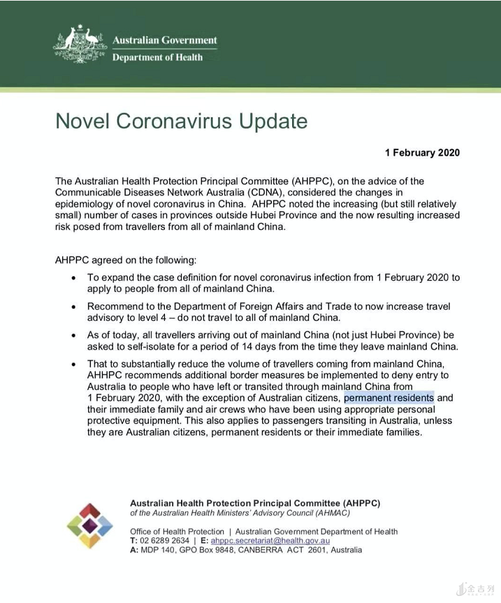 从2020年2月1日起,国际学生在离开或过境中国大陆后的14天内将被禁止进入澳大利亚。