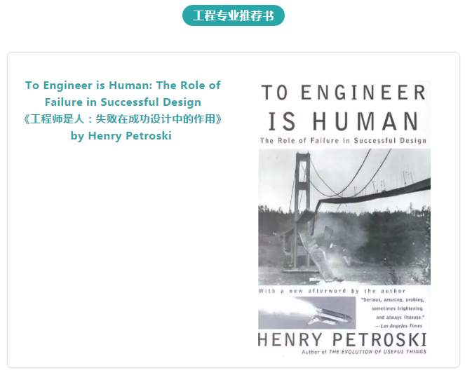 作者就在书中提到了酒店前人行道的坍塌、桥梁的断裂等等知名的「失败案例」,来展现工程师的日常以及工程行业需要不断接受失败的现象。