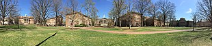 北卡罗来纳大学教堂山的729英亩(3.0公里2)校园由两个中央主导的四边形波尔克广场和麦科克尔地点:Polk Place以北卡罗来纳州本地人和大学校友会主席James K. Polk的名字命名,,而McCorkle Place则以要求该大学宪章的法案的原始作者Samuel Eusebius McCorkle的名字命名。在波克广场(Polk Place)旁边是一个下沉的砖砌庭院,称为坑(Pit),学生将聚集在此,经常与讲者(如坑传教士)进行热烈的辩论。位于校园中心的莫尔黑德-帕特森钟楼收费25分钟。1999年,UNC-Chapel Hill是美国景观设计师协会大奖章的十六个获奖者之一,并被TA Gaines在他的著作《校园作为一件艺术品》中确定为50所大学或大学“艺术品” 之一。