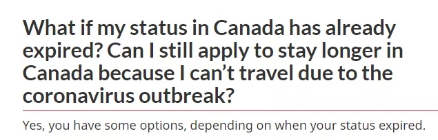 但是,如果我在加拿大的身份已经过期怎么办?因为冠状病毒爆发而无法旅行,是否仍可以申请在加拿大停留更长的时间?