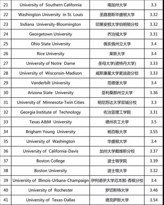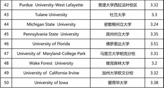 2、GPA成绩3.0-3.6,建议选择Top30-Top50的院校。