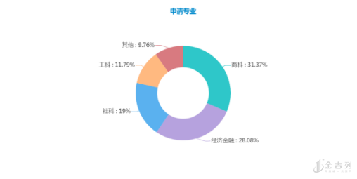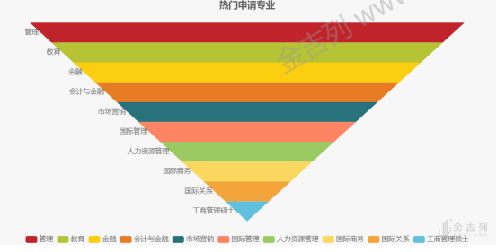 在热门申请专业细分中,绝大多数都是商科类的专业。教育专业在众多专业中,位列第二。这与教育专业大多允许跨专业申请,不要求学生本科专业背景相关,而且教育专业毕业后从事教师职业,每年都可拥有带薪寒暑假,这对学生来说有巨大的吸引力。