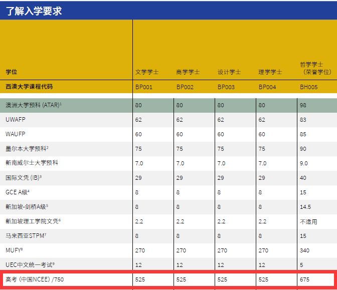 要求达 到总分的百分比 ,像是新南威尔士大学,西澳大学等;