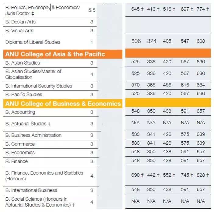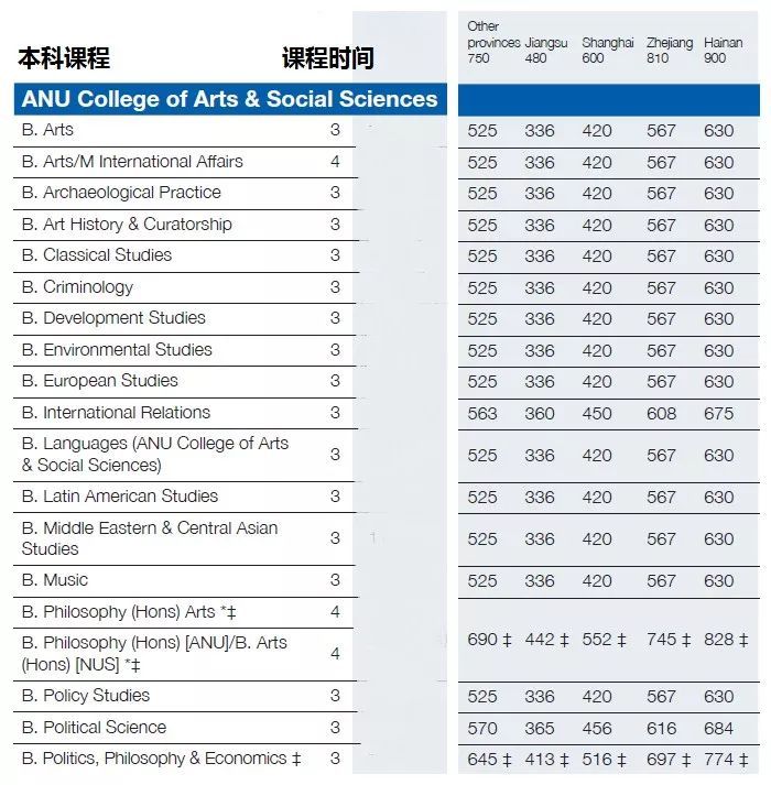 上海高考总分变成了 660 分,因此,上海地区的高考学生,需参考下面的表格来报考澳国立大学的本科专业: