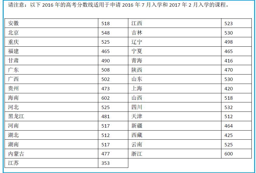 高考成绩申请澳洲大学