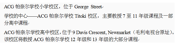 自 2019 年 1 月起, ACG 高级中学的学生将搬至 ACG 帕奈尔学校高中校区,并在崭新的校园里继续学业。大部分 12 年级和 13 年级的课程将从 2019 年 1 月起于新校区进行教授。新校区位于 9 Davis Crescent, Newmarket (毛利电视台原址)。