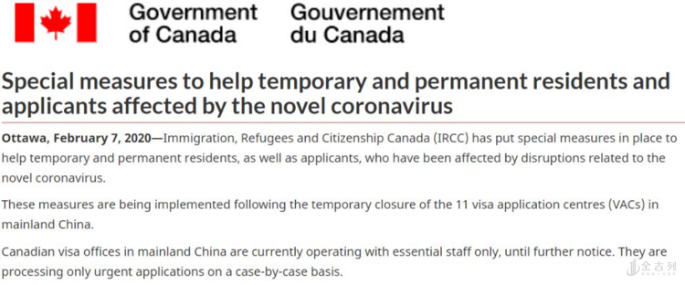同时,昨天加拿大移民局发布最新政策:对中国访问签证者、留学生、永久居民、公民申请者实施特殊帮助政策!即日起生效!