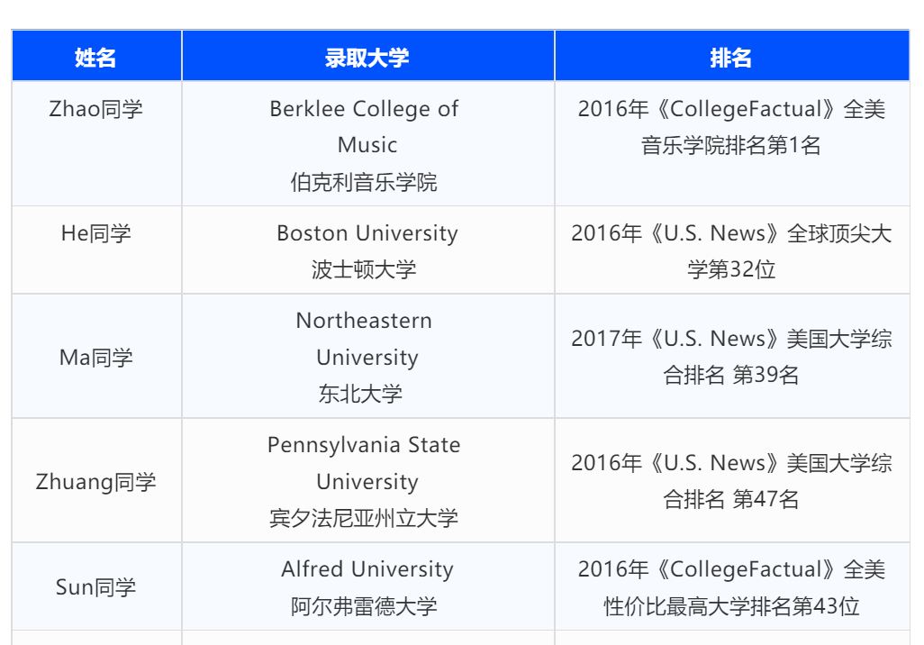 ● 拥有顶尖的大学升学辅导团队,毕业生成绩优秀,是很多大学招生代表的优先选择。 中国毕业生均申请到全美排名前50的大学。