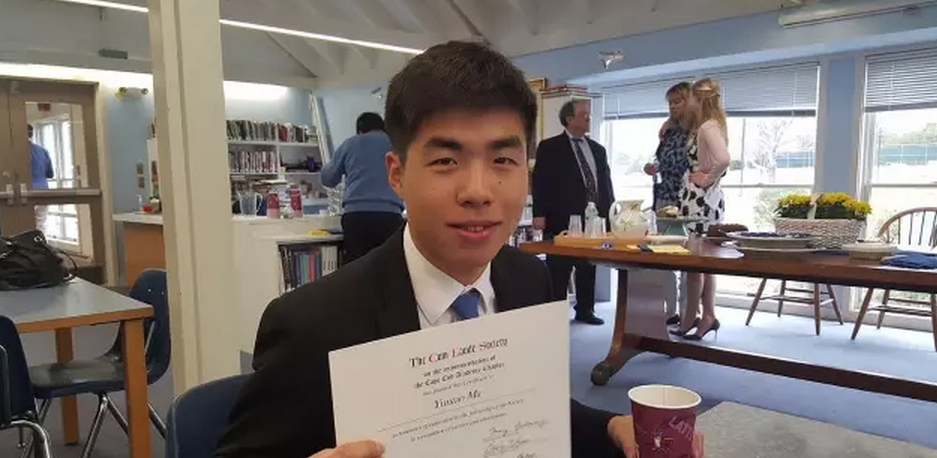 Tommy在科德中学就读期间获得了最高学术荣誉奖,每一年,科德学院都会挑选出最优秀的学生加入“精英学生群体”。