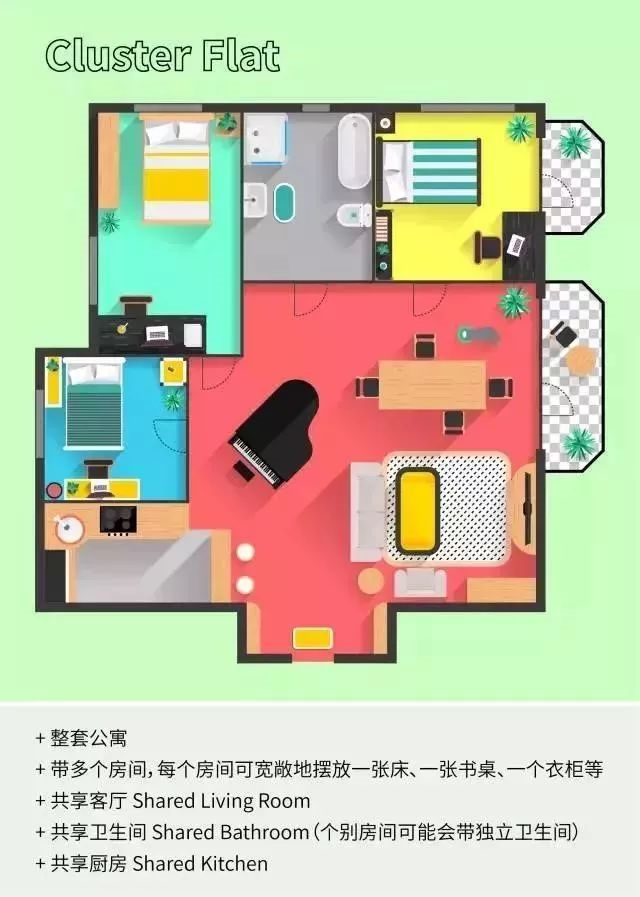 一般租整套公寓的,都可以一起找小伙伴进行拼房。