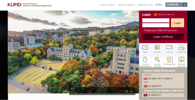 韩国所有大学都有门户网,门户网的作用就是传达信息。无论是选课、查作业、交学费、申请宿舍,只有你想不到的,没有门户网不能做的。已经2月了,很多学校的门户网都可以开始注册使用了,注册的初始账户和密码一般为申请时的准考证号和生日。