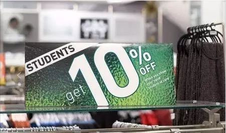 去各大商店时切记要询问是否有学生折扣,因为一些商店即使有学生折扣,你不问,对方是绝对不会提的,不然怎么有句话说:无奸不商咳咳…