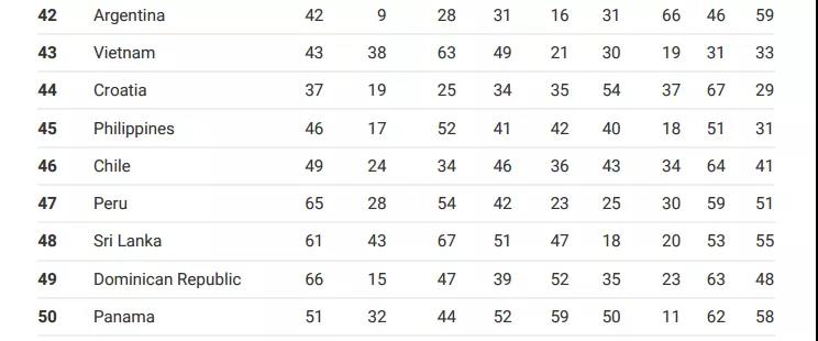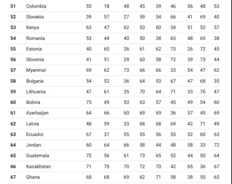 与去年相比,英国的整体排名下降了一位。伦敦是全球游客量最多的城市之一,且长期作为欧洲经济中心,虽然已脱欧,但是英国在文化和世界影响力方面,排名没有变化。
