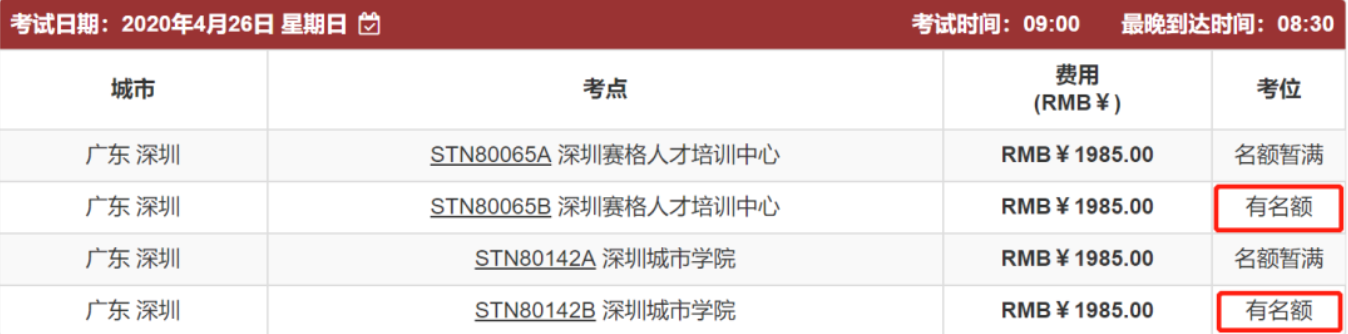- 深圳考点 3月考位暂满 ,4月18日、4月26日场次有 考位