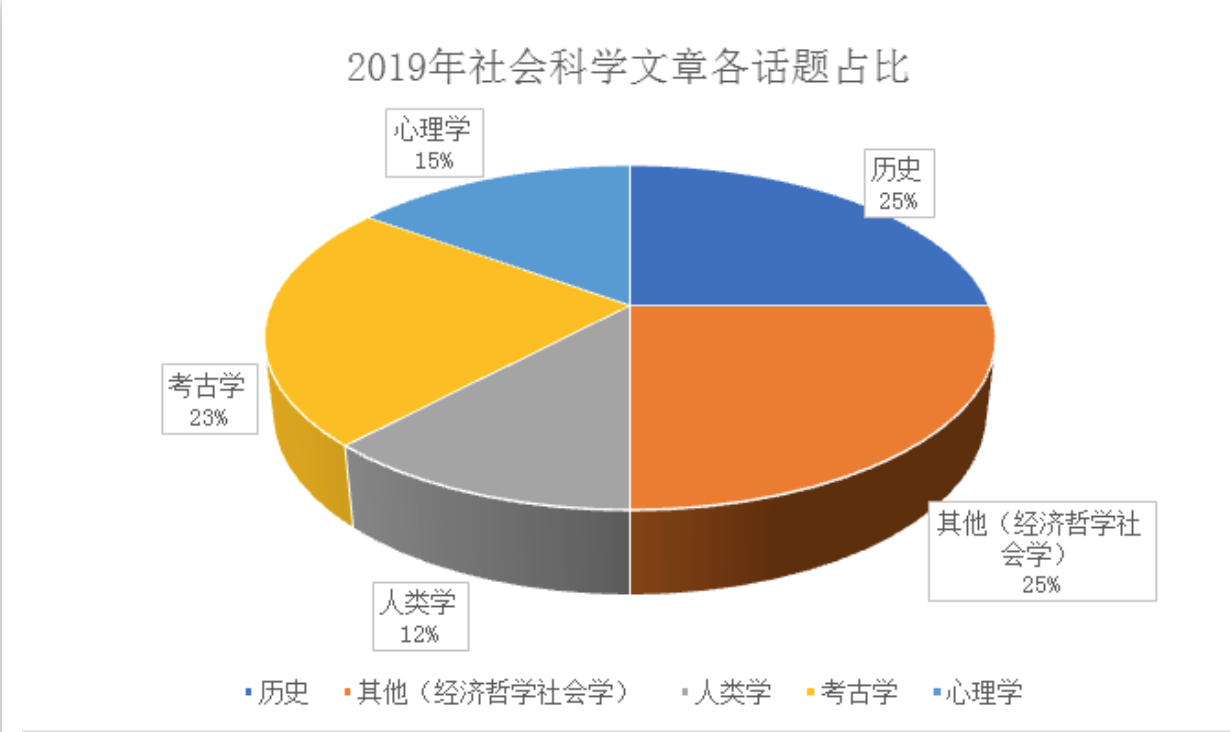 社会科学类 所涉及到的内容非常广泛,包括考古,心理,历史,经济,人类学等学科,一般都是大家平时接触不是特别多的学科,但相对话题会与我们的生活较为息息相关所以文章难度并不算很大,可能ETS也考虑到了这一点,所以社科类话题的占比一直都是略低于自然科学类,从16年到18年呈现递增的趋势,但在2019年又再次回落。经济学商学及社会学概率上升较为明显,心理学类文章较2018年有较大回落。