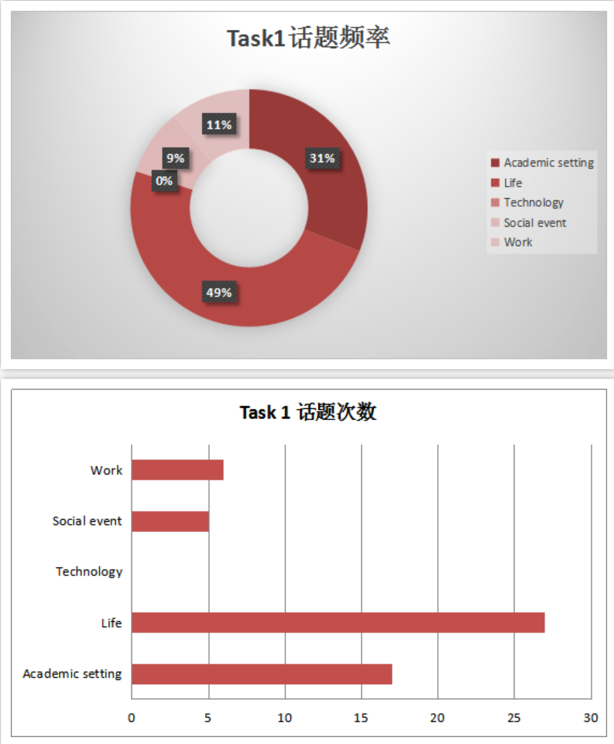 今年新政后删独立题目便只剩下了一道题目,也就是原先的Task2,现在的Task1,新政后Task1中生活类考察题目为49%,较去年的51%的所占比重相比略有下降但是基本持平,说明 生活类题目依旧是task1题目的考察重点,而且考察内容多和家庭,朋友相关 。