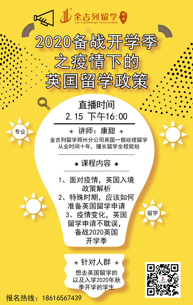 2020年新春,一场突如其来的肺炎疫情让全国笼罩在紧张的氛围之中。随着时间向前,疫情新增病例每日增加,全国人民众志成城、齐心抗疫。然而,在这非常时期,不少海外国家为防止疫情蔓延,不得不航线停飞。面对一系列的变化,向往留学海外名校的你,是不是心也慌的一批呢?没关系,非常时期,金吉列教你如何继续英国留学之路!