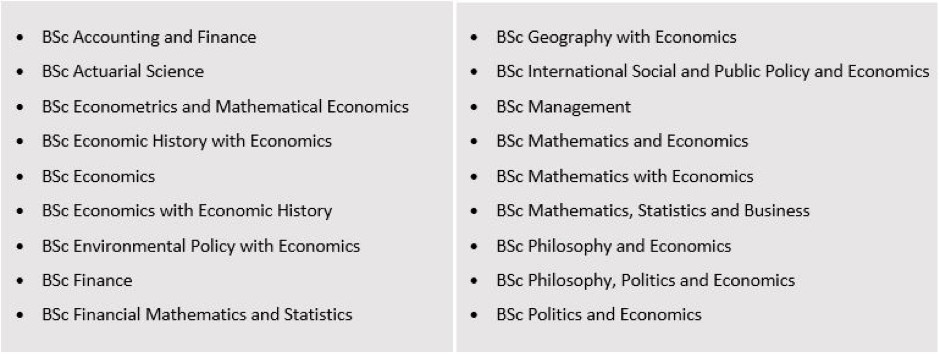 贝勒比斯的学生可以申请去伦敦政经学习以下学位课程: