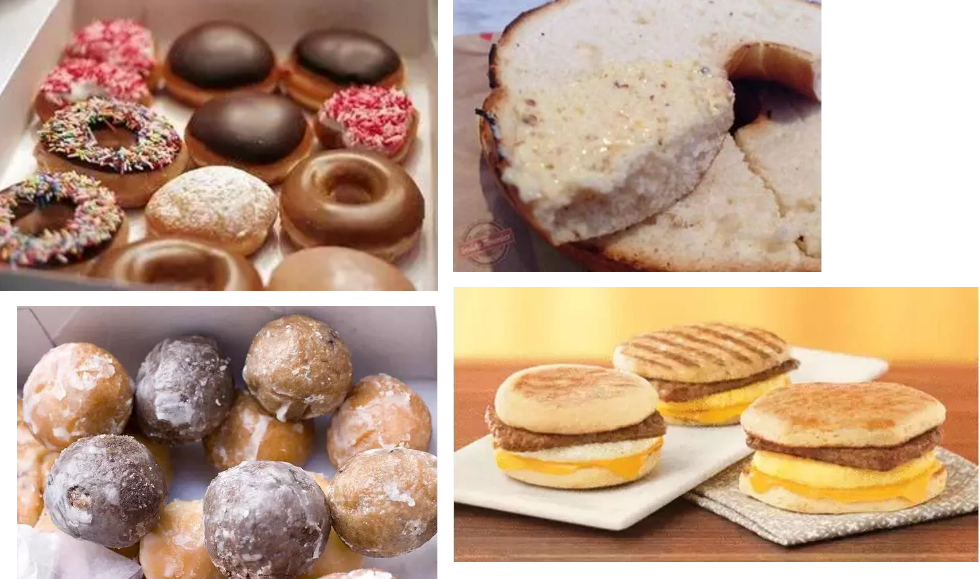 Bagel: 这个可能是同学们最难理解的东西了。我其实也不知道该怎么解释他,不过也是一种能填饱肚子的食物,有点类似馒头,但是没有馒头那么松软。Bagel的吃法就是对半切,烤一下再抹上固体的奶酪或者是黄油。先来