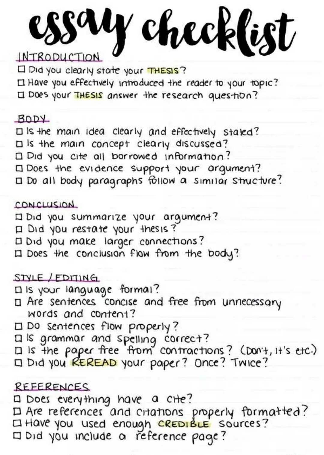 19 fall的同学们准备好了么?分享一篇超实用的essay checklist给你们,人手一张!不谢!
