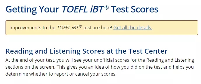中国考生将在托福考试恢复后体验到该功能(目前2月份考试全部取消,3月份考试暂无变化)。个人认为,在目前疫情之下,ETS推出这个功能,还是挺好的。至少,能让急需出分的同学,第一时间知道自己的大概成绩,方便早做决策,也是有益的,也让考生尽早规划后面的考试。之前的6天出分,考生还可以在考后去浪一周,现在当场出一部分成绩,还是挺刺激的,对考生心理承受能力要求更高了,整体来讲,还是很刺激的!对于没有好好备考的同学来讲,也是一种鞭策吧,就是当场打脸,没考好,滚去继续备考。