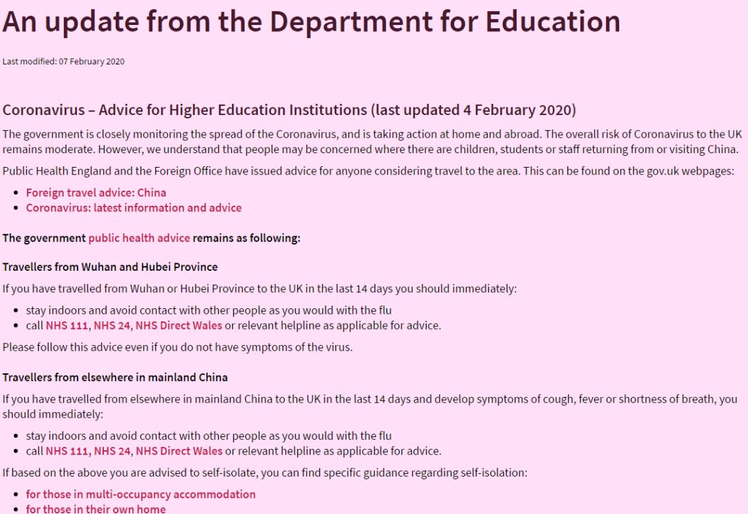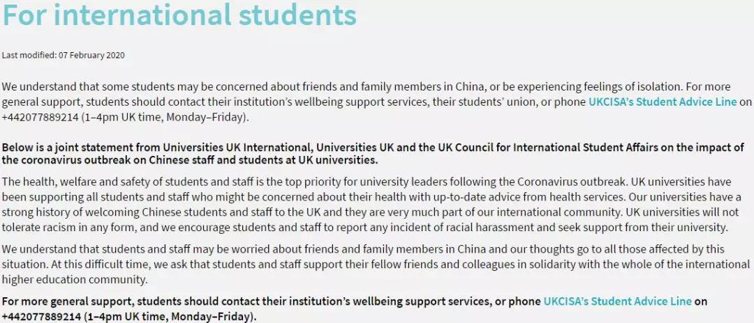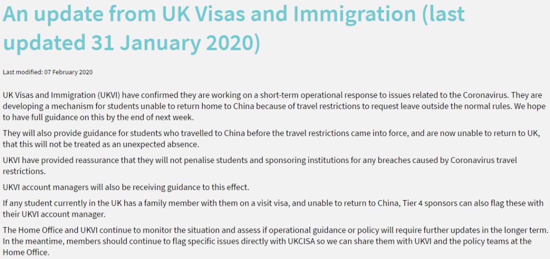 2020年2月7日, 在UKCISA官网针对该应对疫情的政策进行了说明 :