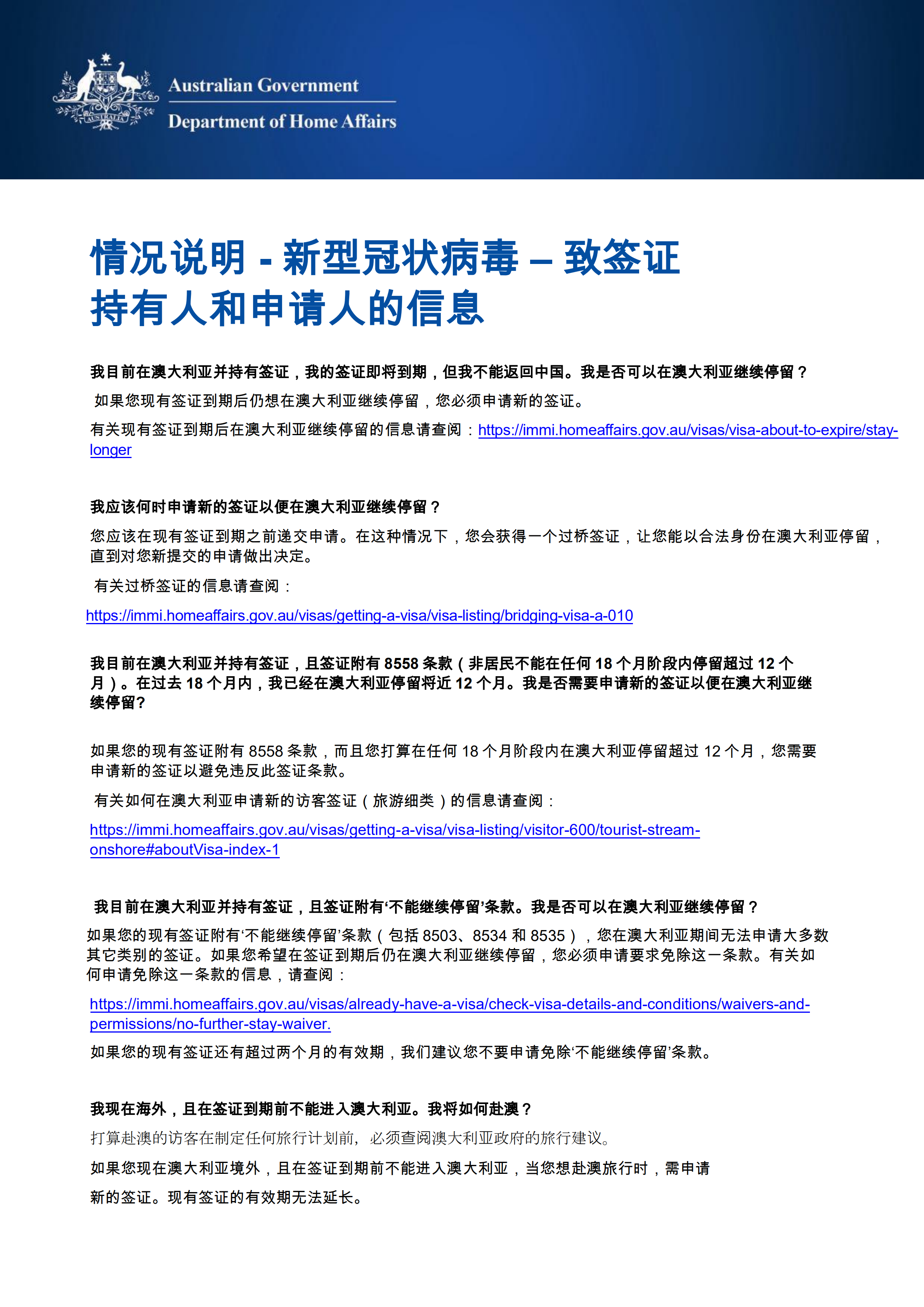 新型冠状病毒--澳洲教育部致签证持有人和申请人的一封信