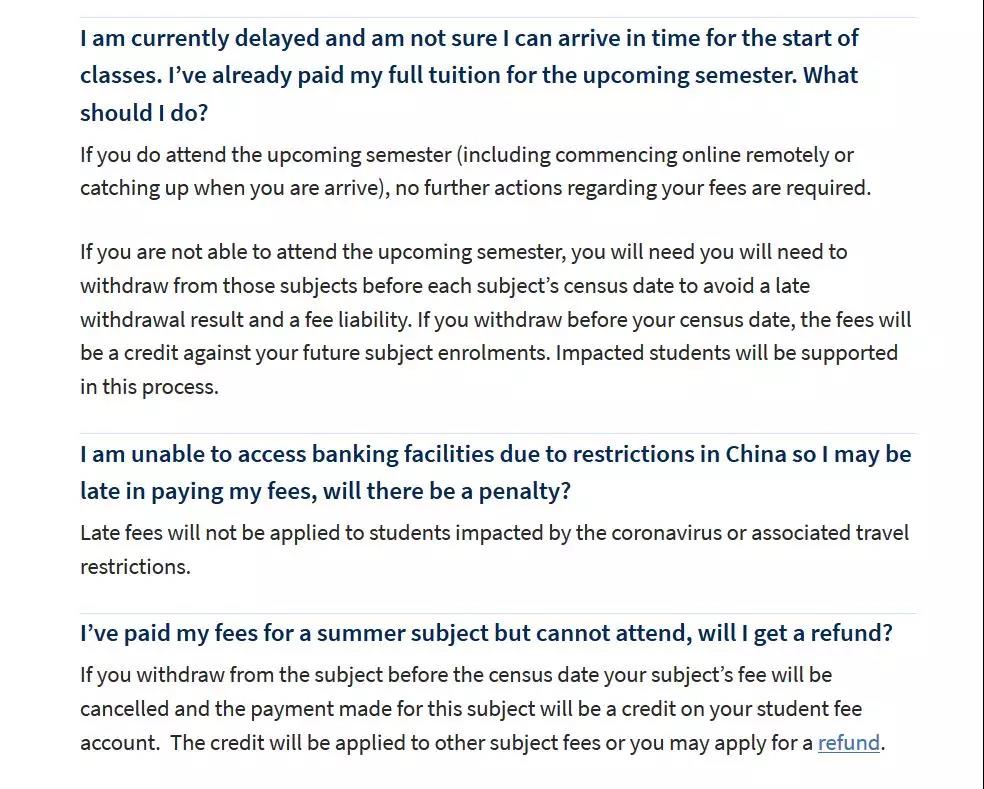 如果还是对此比较担心的同学可以用各自的学校邮件发送给 sa-fees@unimelb.eu.au 来申请延迟交费。目前学校的最新政策是延迟交费到二月底。邮件内容需要包括:Stuent ID,Full name,Date of birth ,Major, 和延期原因。