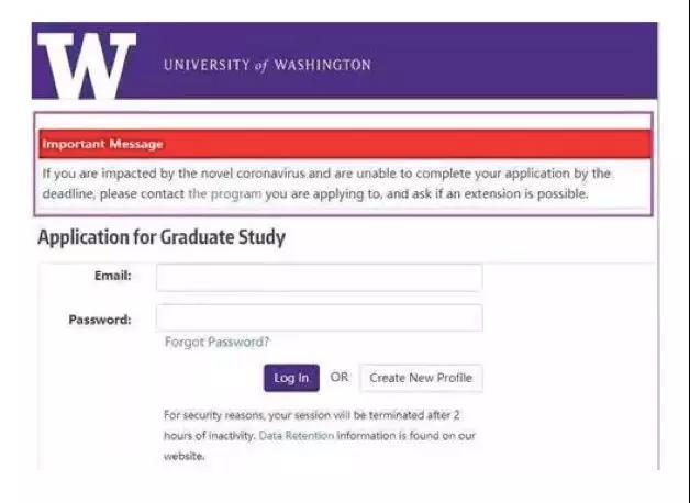 在华盛顿大学的申请界中,校方特意:“如果你受到了新型病毒的影响并且无法按时提交申请,请联系我们。”