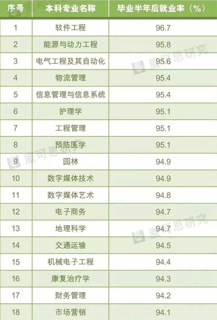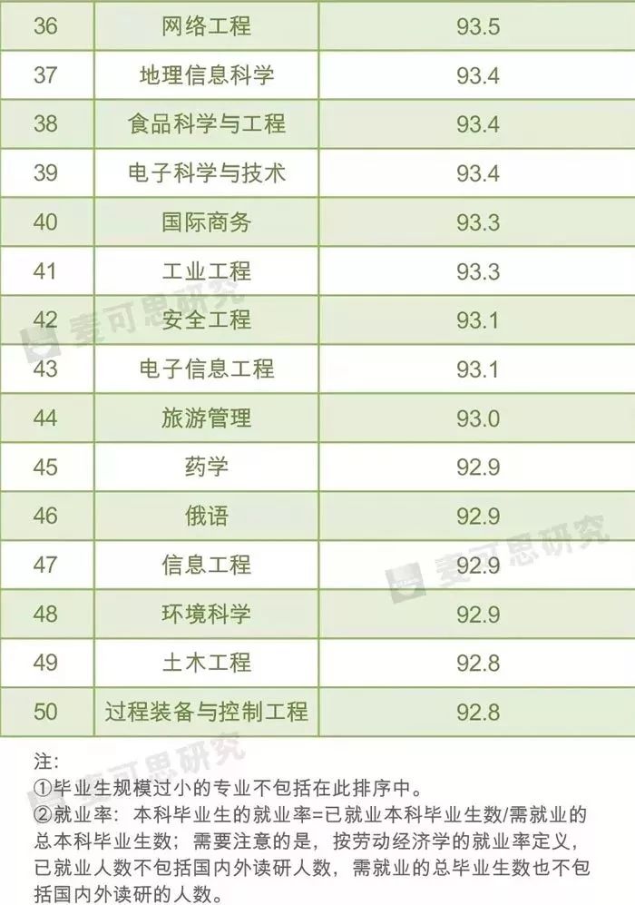 麦可思数据:2017届本科就业率较高专业TOP50