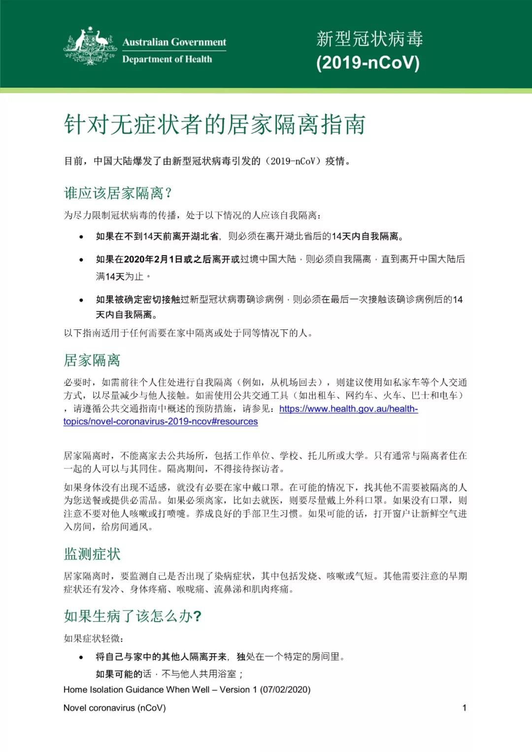 澳大利亚政府对于此次新型冠状病毒的官方指南