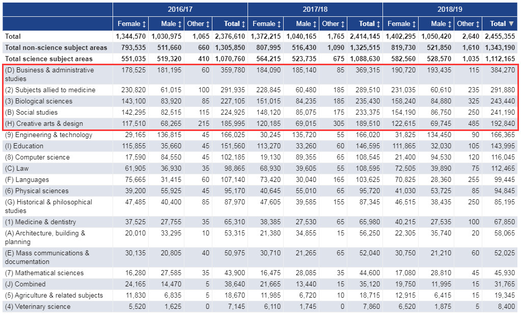 HESA最新数据显示, 商科 仍旧是英国大学最受欢迎专业。