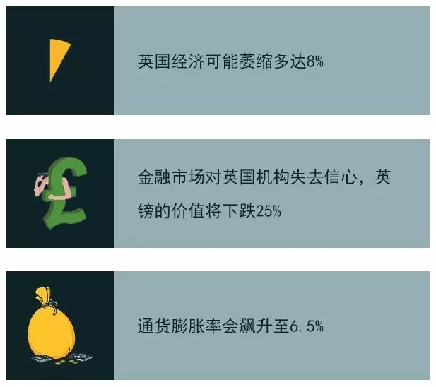 除生源流失之外,英国脱欧对经济发展也有很大的影响。根据英格兰银行的预测,一年左右的时间,英国经济将会面临如下重创(事实上,英镑在18年已经累积贬值了5.58%):