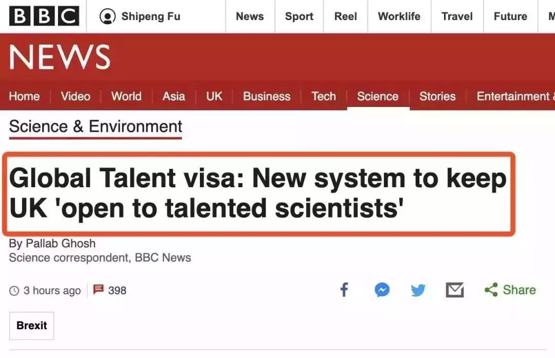 在正式脱欧前的周日(1月26日)英国首相鲍里斯宣布了一项新的移民政策:为了吸引世界领先的科学家,向全球招揽人才,将为科学家、研究人员和数学家等推出快速通道签证计划,2月20日启动,申请人无需获得工作机会就可申请该类签证。且这些“全球人才”签证的数量没有上限。
