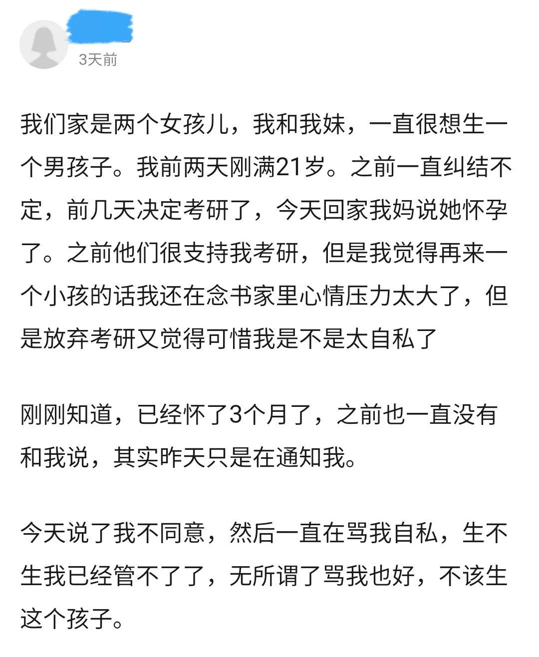 突然得知妈妈怀孕了。