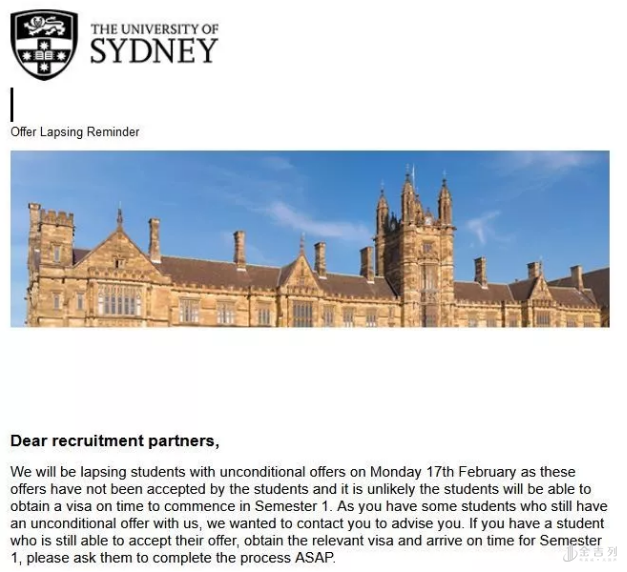 重要通知! 悉尼大学2020年第一学期录取通知书将于下周一过期,请同学们于2020年2月17日周一之前接受完整录取offer。