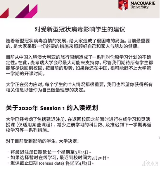 由于新冠病毒引发的旅行限制对部分同学产生了影响,澳国立计划为这批同学提供一些选择并且在官微发出了中文内容:详细内容如下: