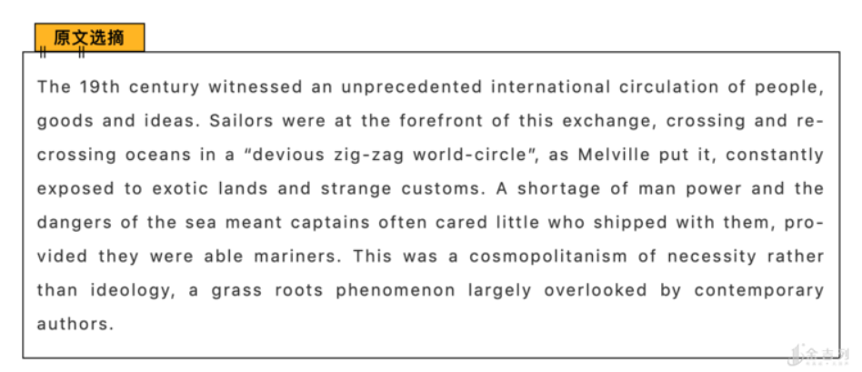 今天和大家分享的是2019年7月20日中一篇关于全球化的文章,主角是《白鲸》作者——美国著名作家Herman Melville。感兴趣的话强烈推荐读一下全文,很有GRE文科文章即视感。