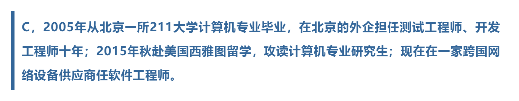 C:没想太远的事情,只是觉得再多学点东西吧。如果在IT/互联网行业从事开发工作,肯定还是在美国收入高。