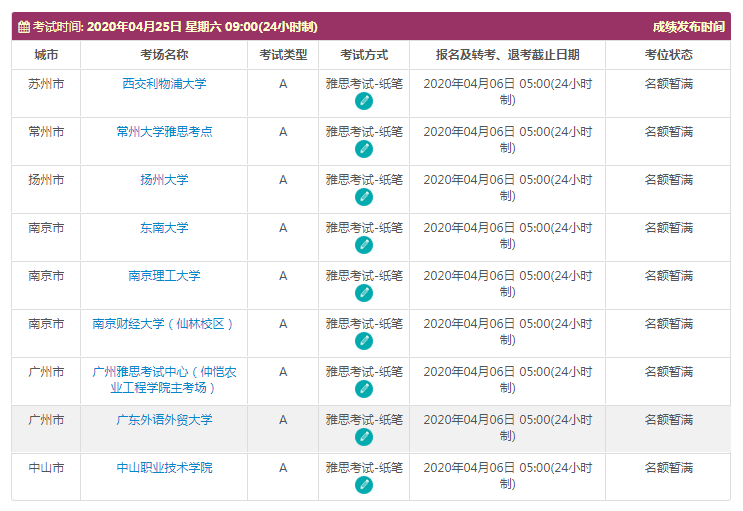 以江苏、广东两省为例,即使是4月的最后一场考试,都显示了名额暂满。