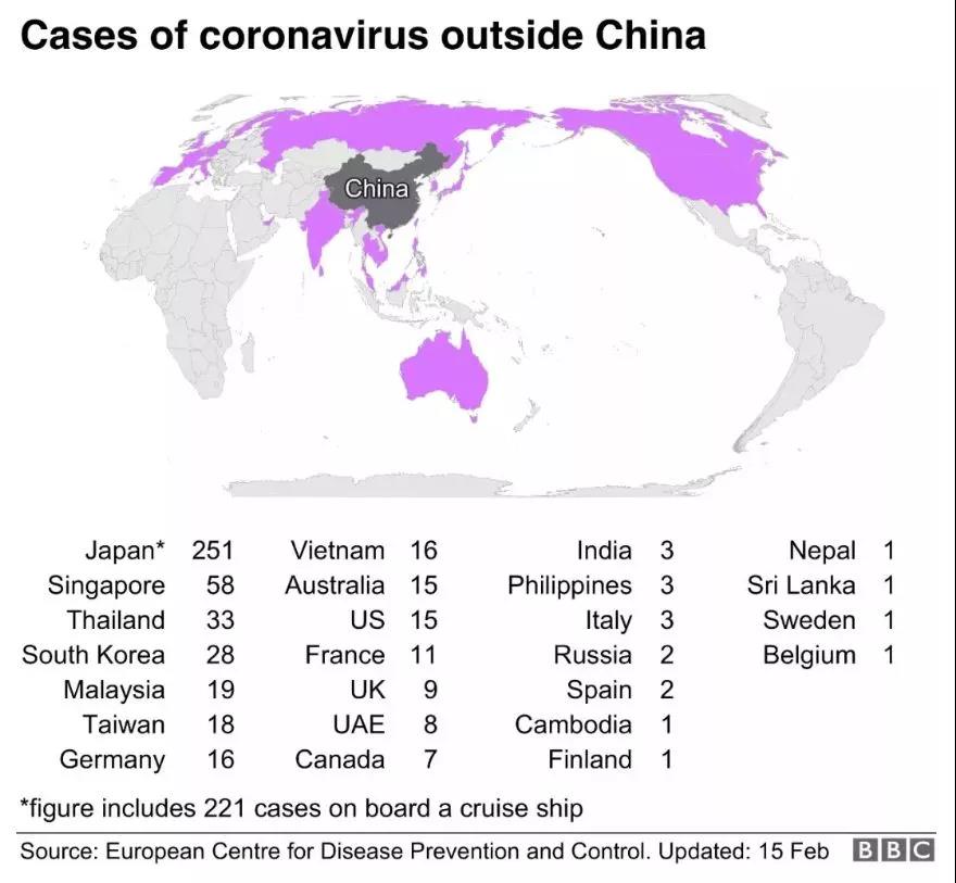 BBC统整的国际疫情案件数量表