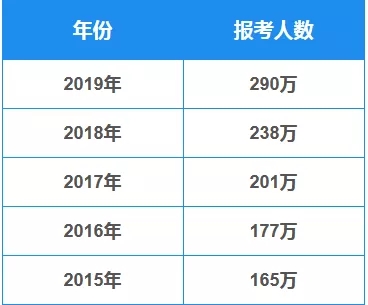 下图是2015-2019年的研究生报考人数,每年都呈现明显上升趋势。