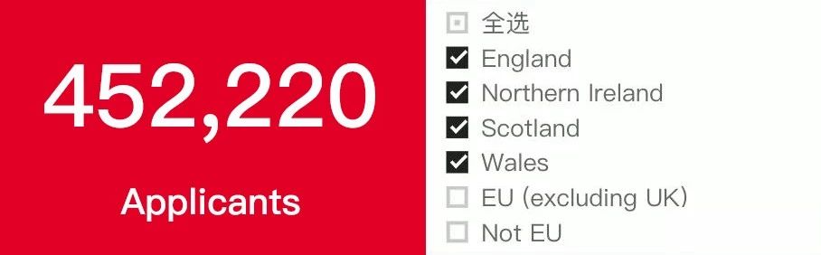 在全部申请者中,有452,220人来自英国,数量相比去年同期(453,840)下降了约0.4%。