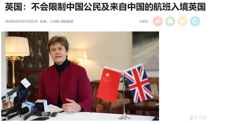 英方重视中方关切, 全力支持中国政府采取积极有力措施应对疫情,愿尽己所能提供帮助 。 英方将慎重、镇定看待和应对疫情, 不会限制中国公民及来自中国的航班入境英国,反对因疫情对中国公民采取歧视性态度 。