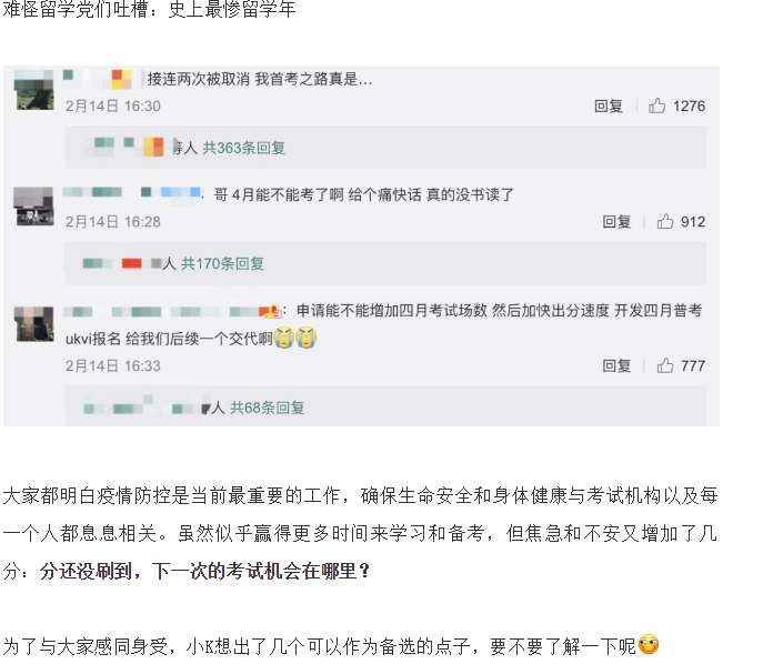 大家都明白疫情防控是当前最重要的工作,确保生命安全和身体健康与考试机构以及每一个人都息息相关。 虽然似乎赢得更多时间来学习和备考,但焦急和不安又增加了几分: 分还没刷到,下一次的考试机会在哪里?