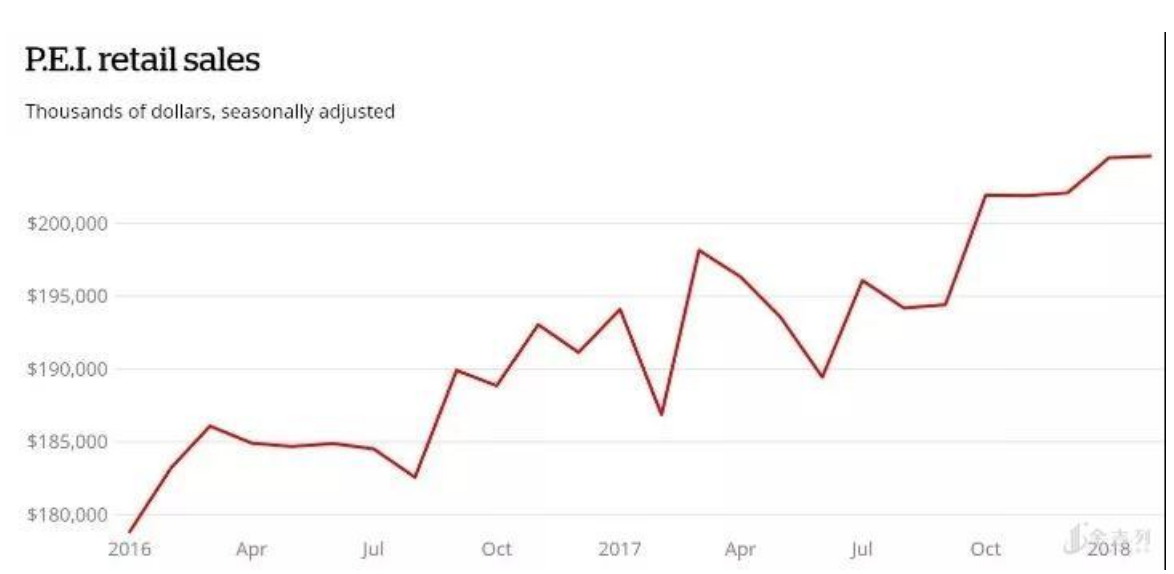 从2016年到2018年,爱德华王子岛省不仅是加拿大东部四省两年来人口唯一增长的省份,而且他的增长率是加拿大第一名,甚至高于安大略省,达到4.27%(安大略省排名第二,是3.22%)。迅速增长的人口又带来服务业和零售业的增长。