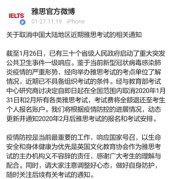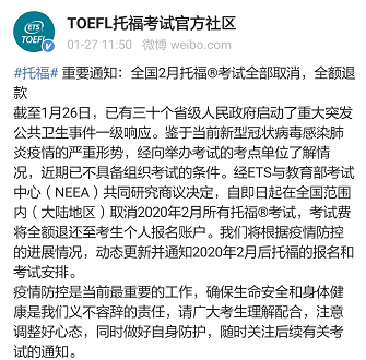 2020年2月份雅思、托福等考试的取消打乱了很多同学的计划,特别是马上就到语言成绩提交DDL的同学们,他们今年的申请之路简直是太坎坷了= = 面对非常时期出现的各种突发情况,首先请同学们不要过分焦虑,调整好自己的心态,做好自身的保护,勤洗手、多通风,没事少出门,出门戴口罩。 其次希望同学们不要过分着急,目前被官方取消的仅是2月份的考试,既然情况已定,那就充分利用好假期时间继续积极备考吧,如果对申请感到担忧的话可以跟顾问老师多多沟通,老师们一定会尽最大努力帮助同学们的!此外同学们平时可以积极关注疫情发展和政府部门的相关通知,对后续情况不要做过度的揣测和担忧,要相信我们一定能打赢这一场战役!