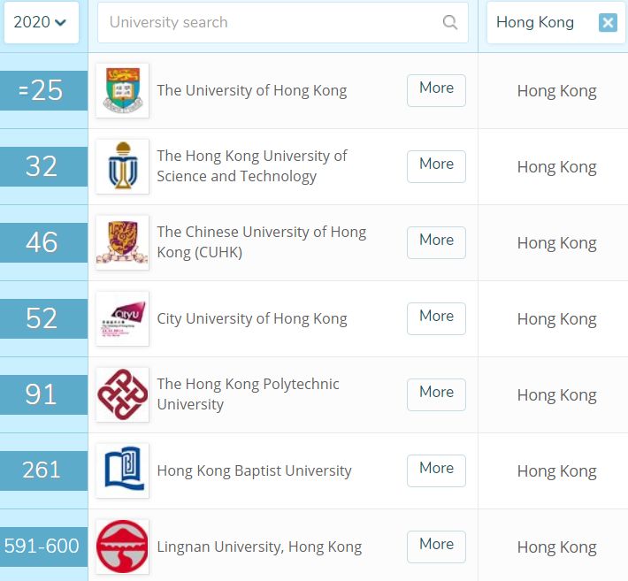 另外,在2018泰晤士高等教育(THE)亚洲大学排名中,香港浸会大学位列 第55位。 在2019年THE世界大学影响力排名世界第60名,位居 香港第二位。
