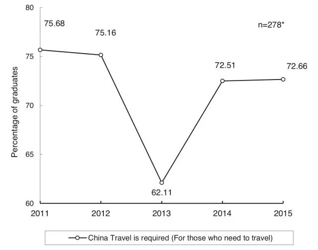 而从浸会大学的调查报告来看,发现有近四分之一的毕业生在工作中需要出差,在这部分人中,有70%多的人是经常出差到内地。