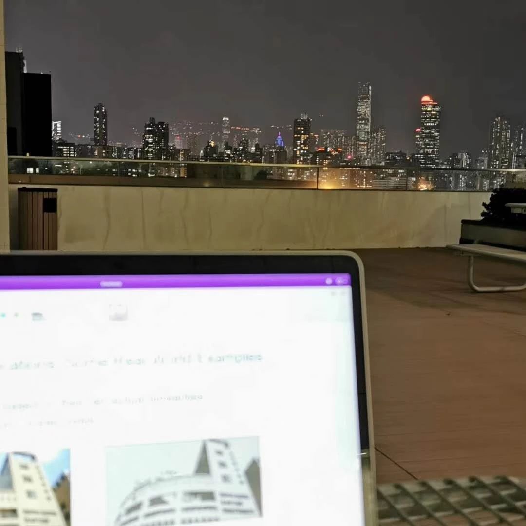 在浸会,可以在露台上边学习边享受维多利亚港璀璨的夜景。
